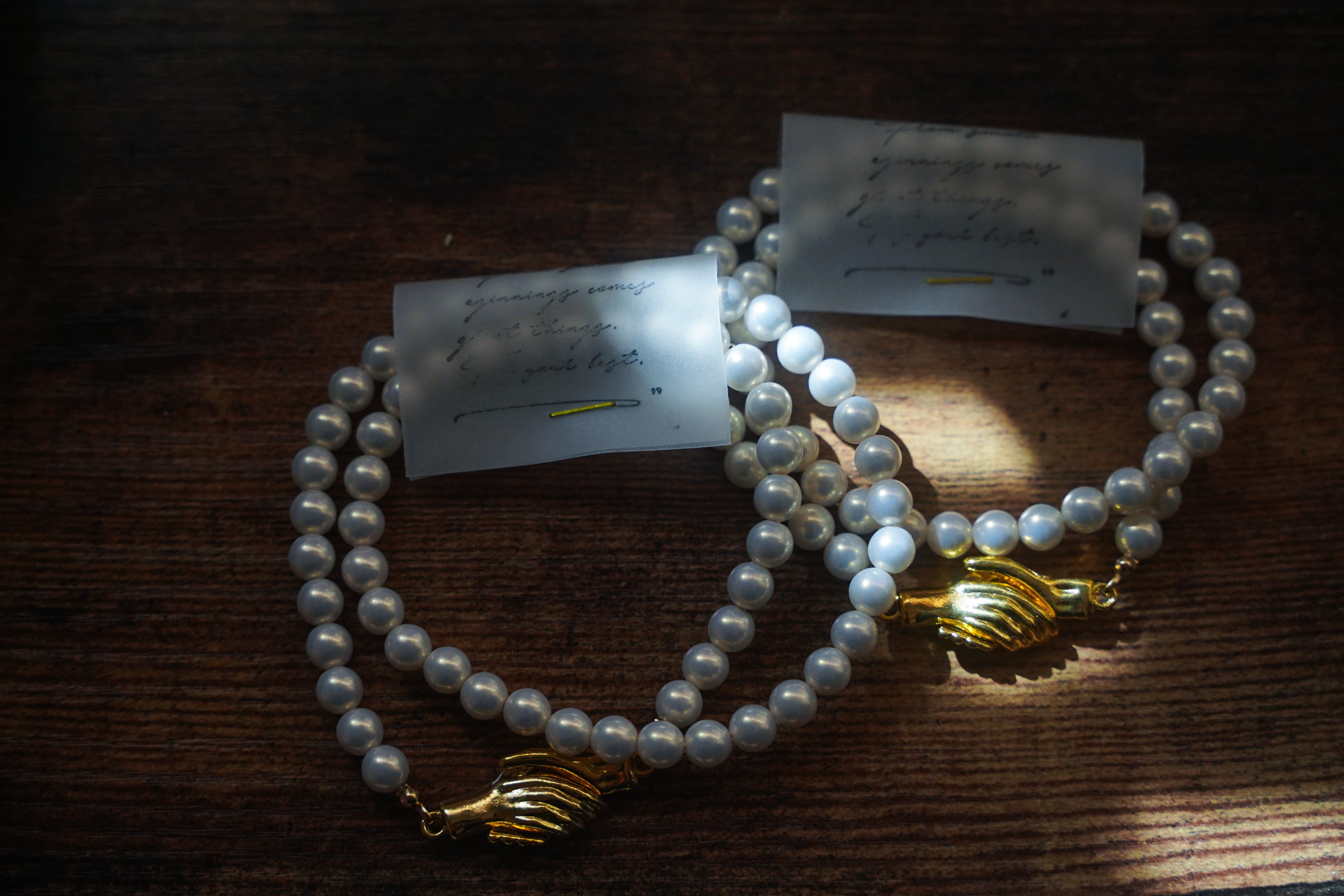 AirPodsストラップ ハンドメイド ニット編み ビーズ付き ネックレス風 アクセサリー