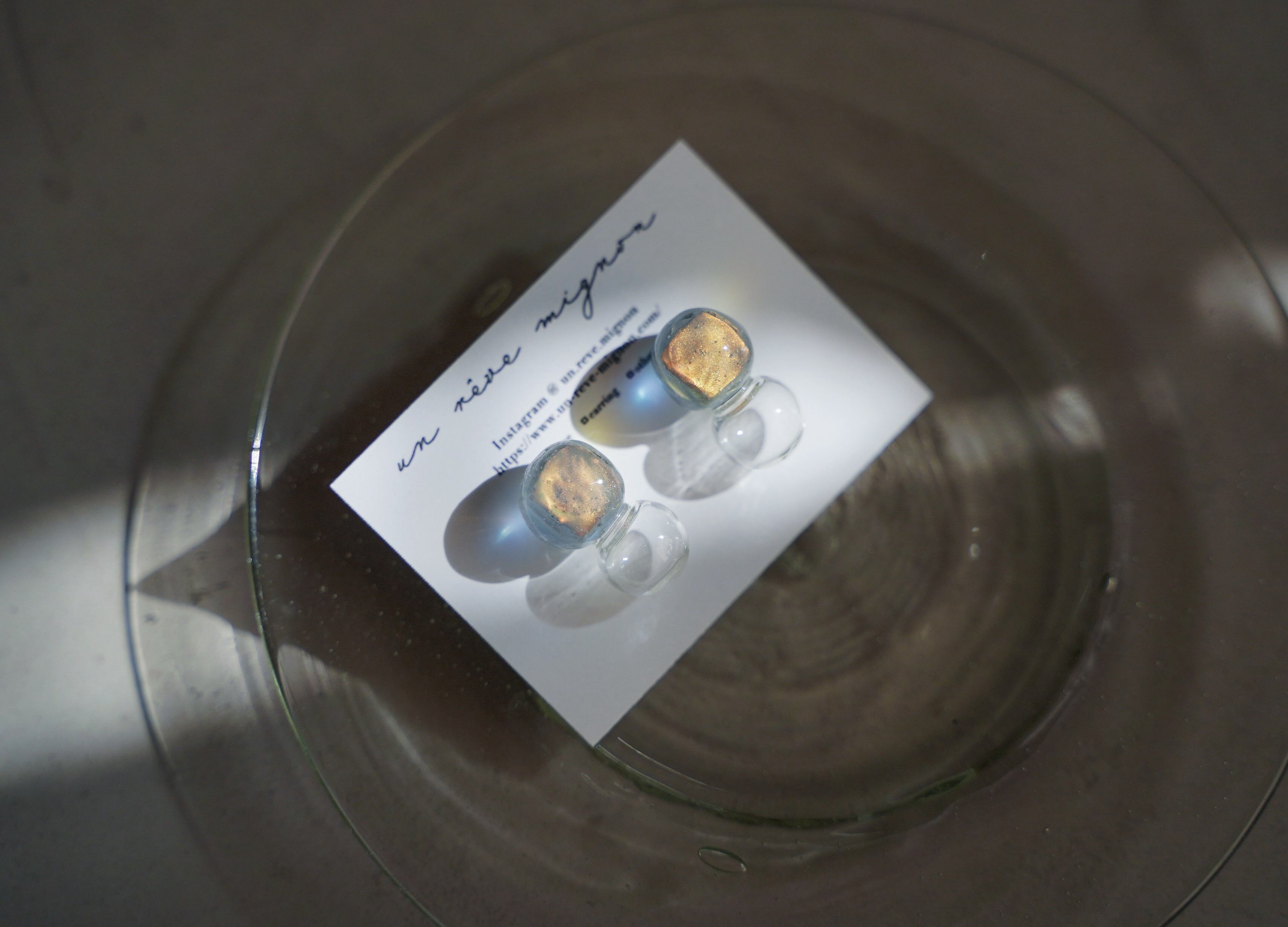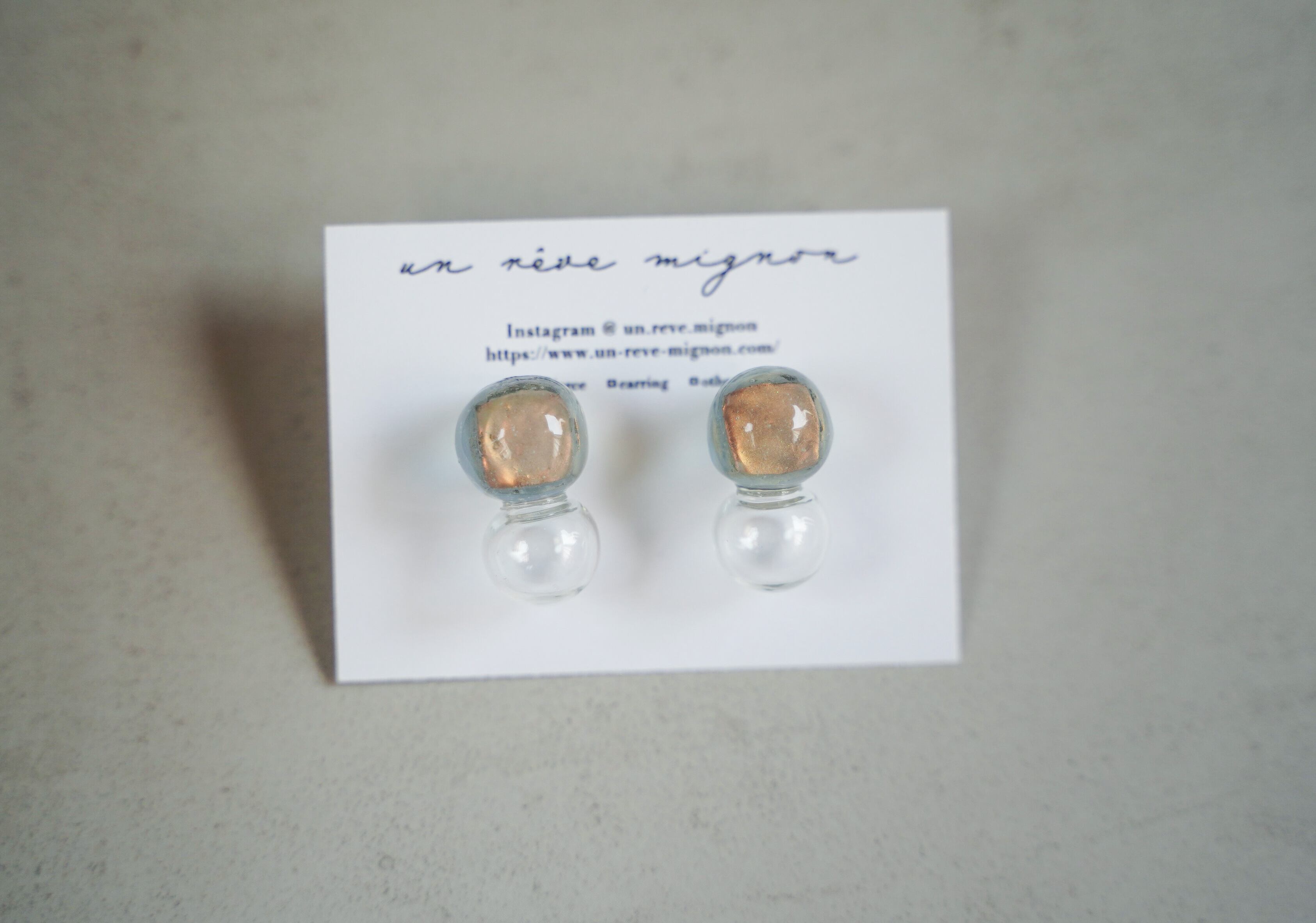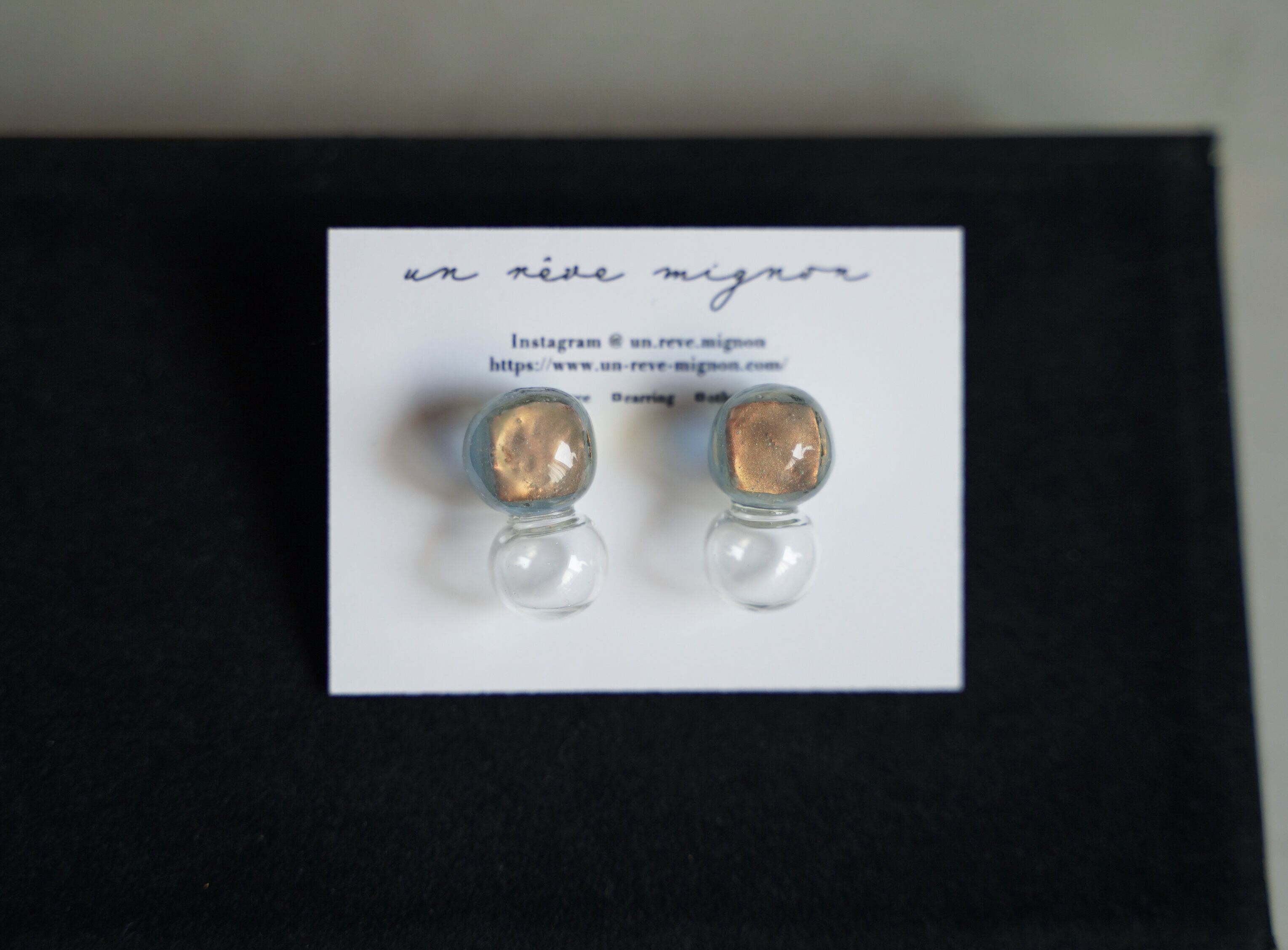 【ブルーメタルシャボン玉】アレルギー対応・透明感・チタンスタッド・キューブ ・シンプル・カジュアル