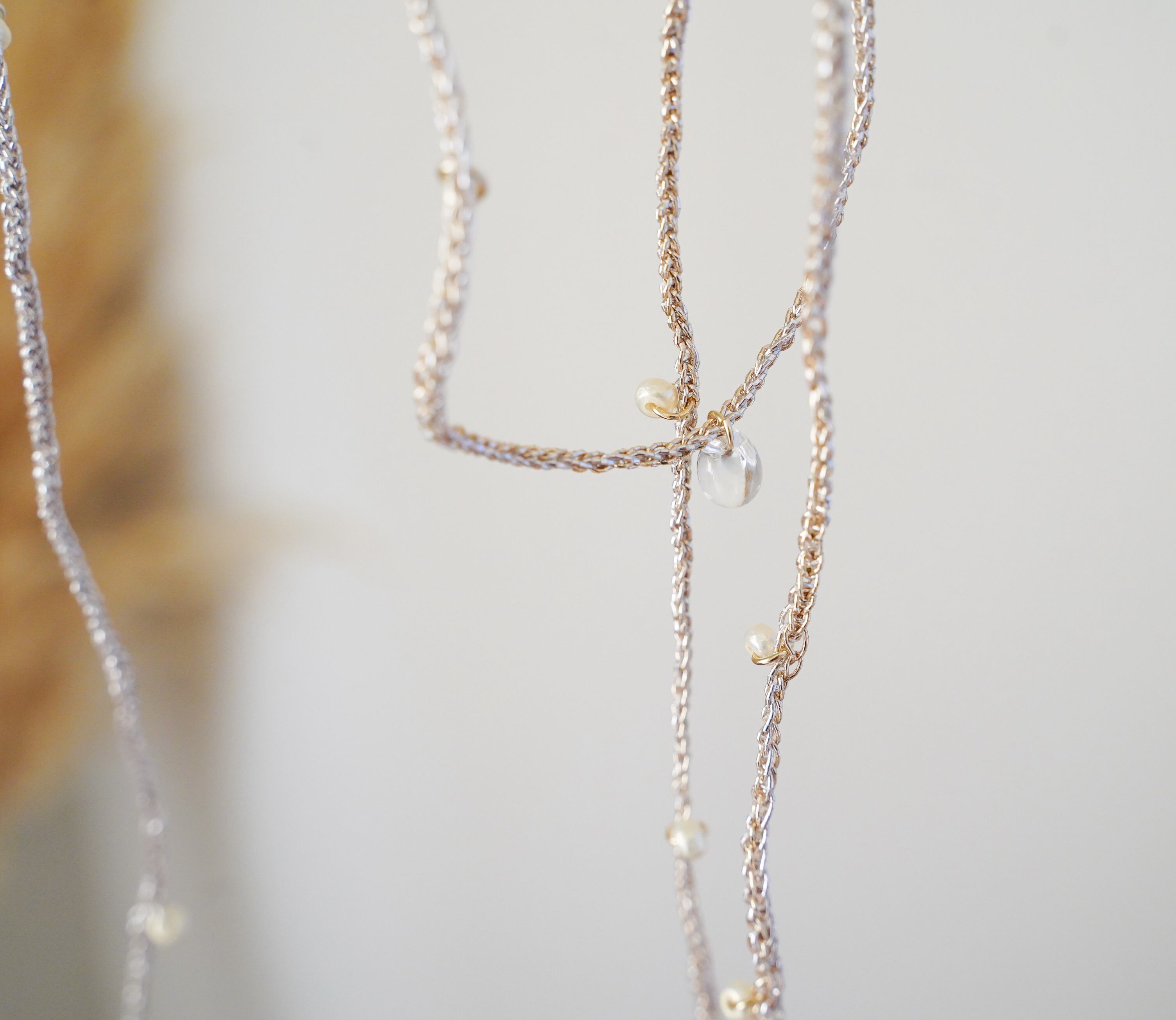 AirPodsストラップ ハンドメイド ニット編み ビーズ付き ネックレス風 アクセサリー