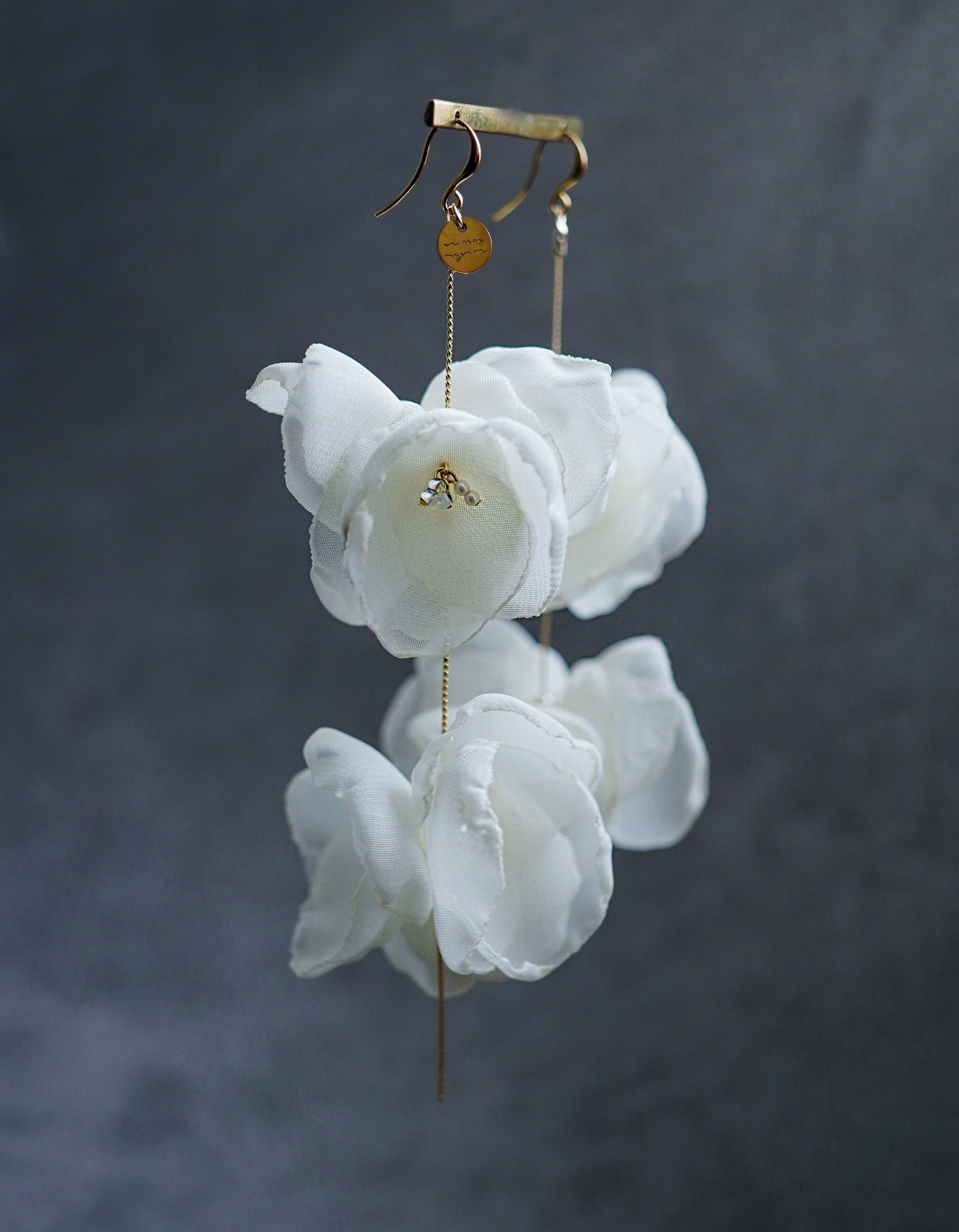 ウェディング シフォンフラワーの大ぶりピアス*イヤリング|揺れる軽やかさ