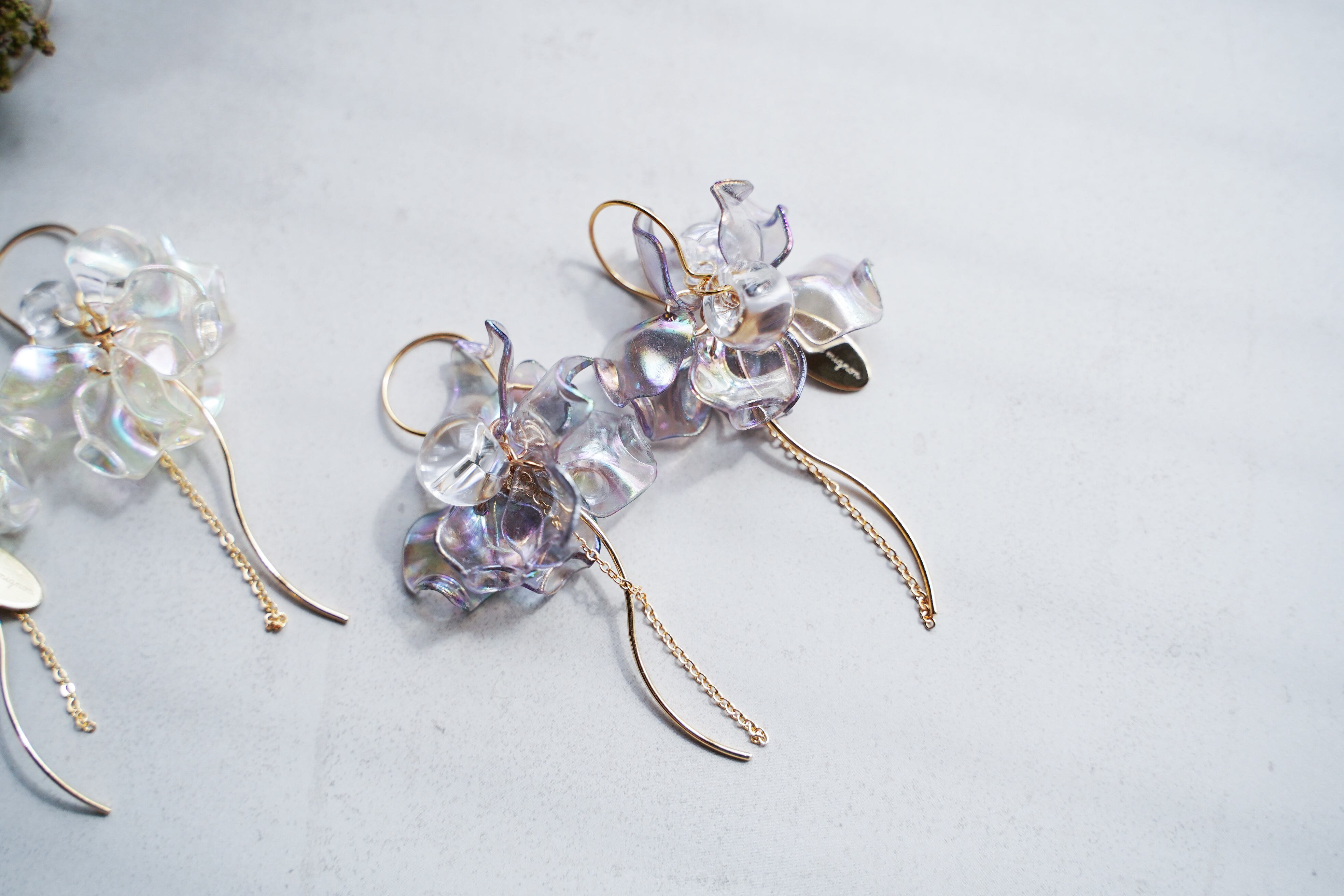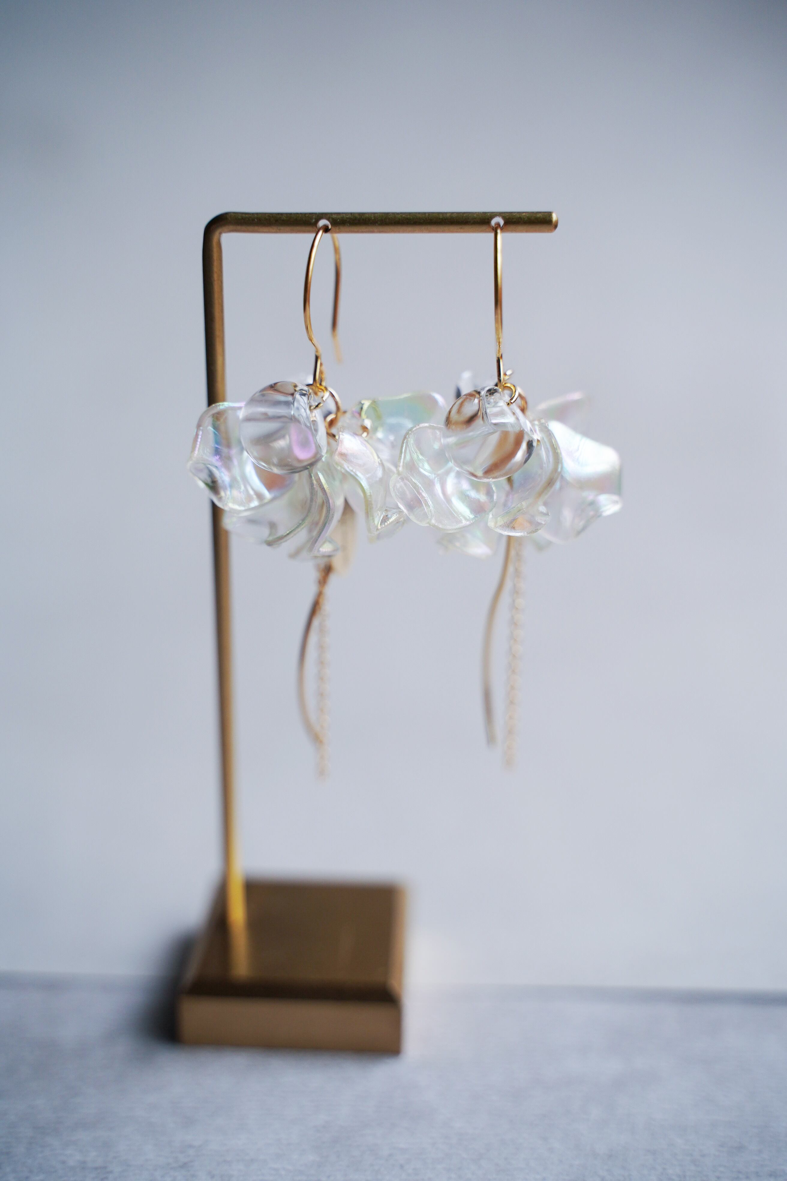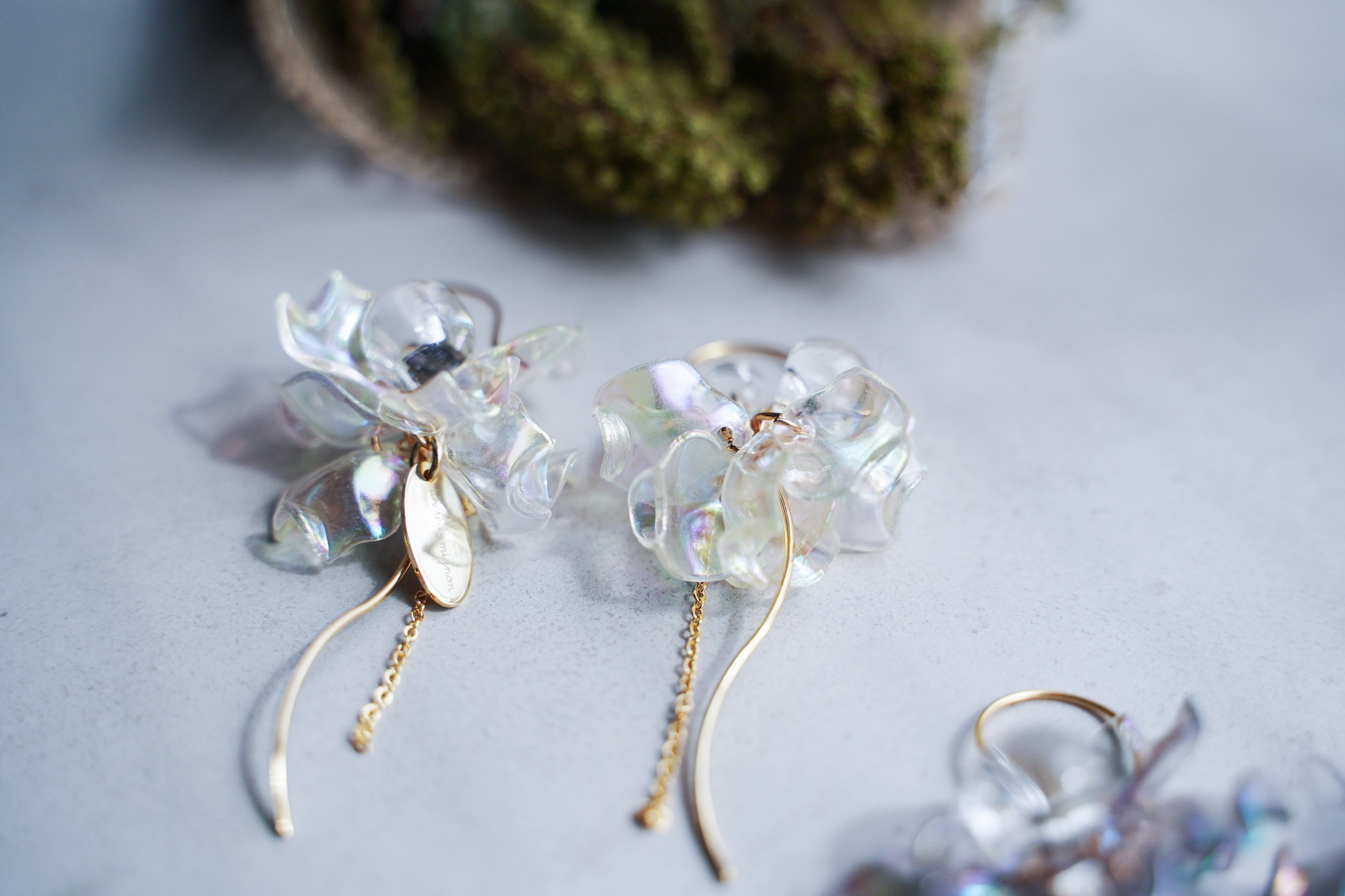 3色【花びらオーロラクリア】ニッケルフリー・アレルギー対応・透明感・チタンピアス・スタッド ・シンプルピアス・軽くて可愛い・