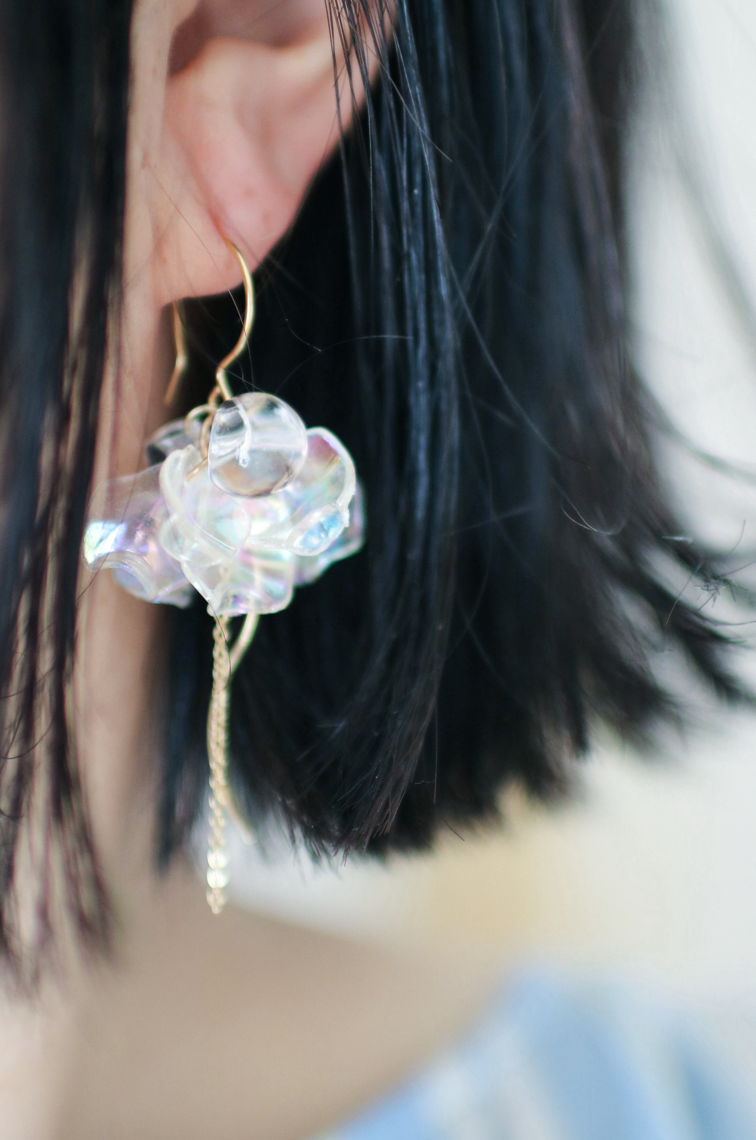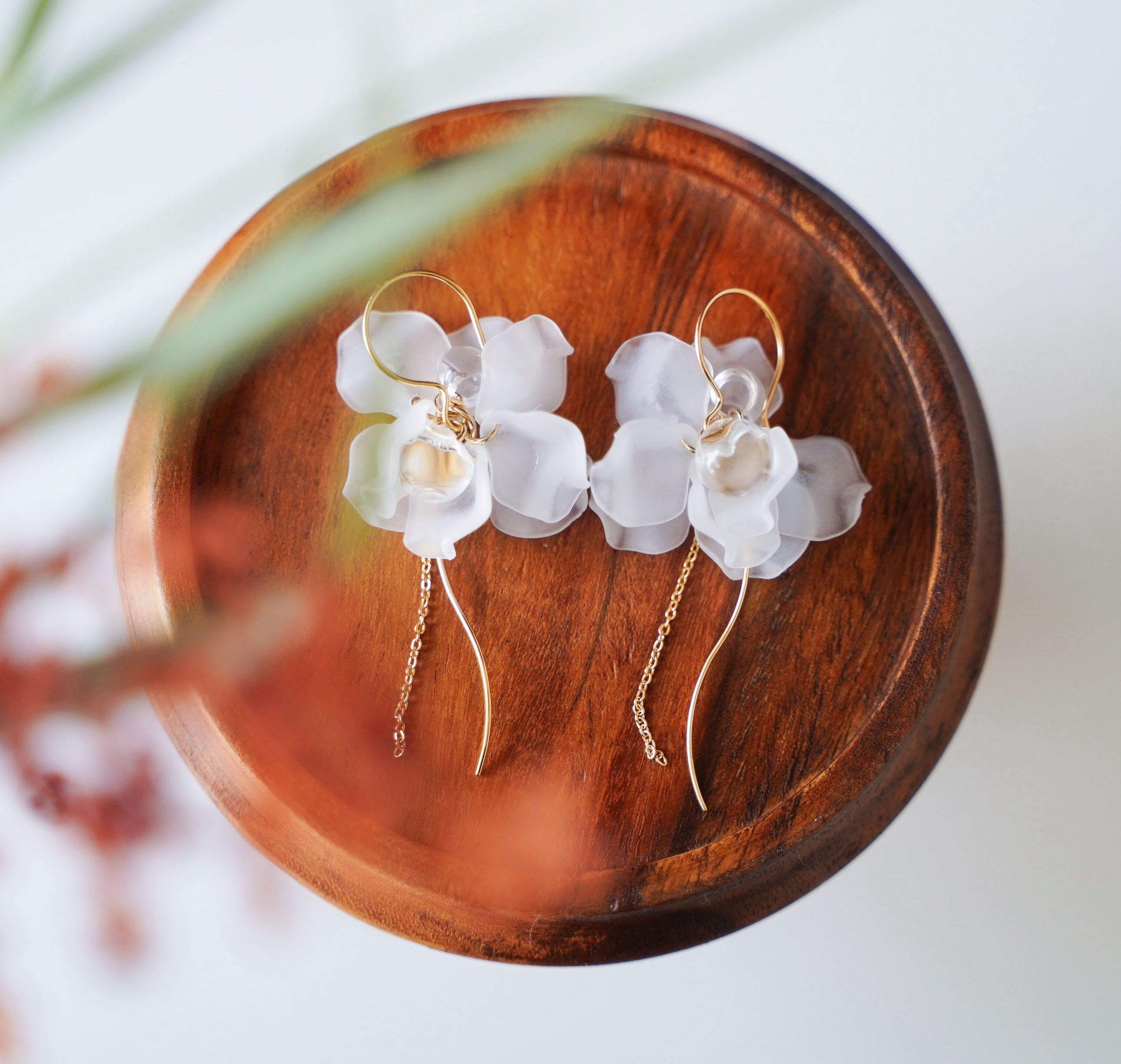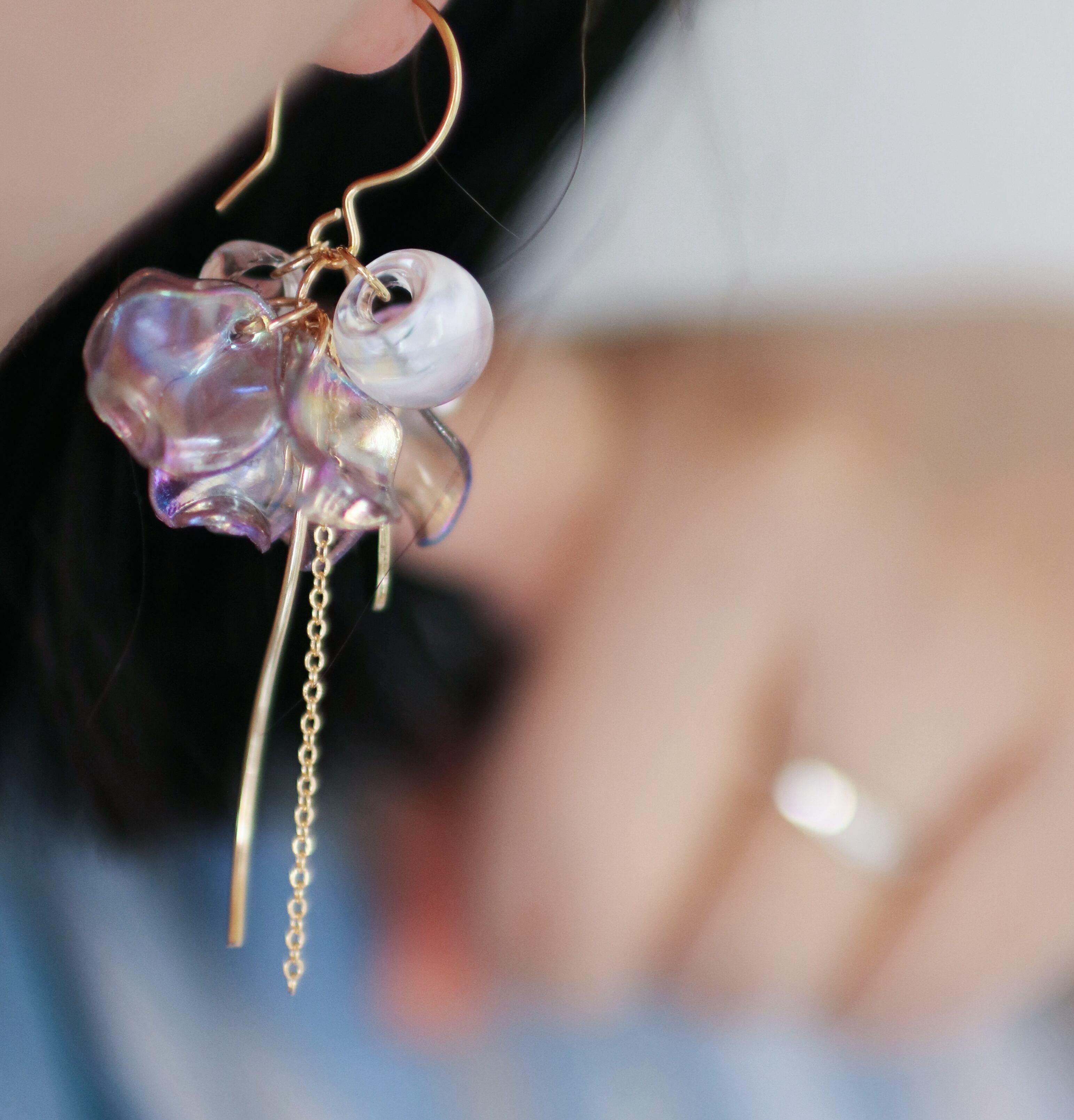 3色【花びらオーロラクリア】ニッケルフリー・アレルギー対応・透明感・チタンピアス・スタッド ・シンプルピアス・軽くて可愛い・