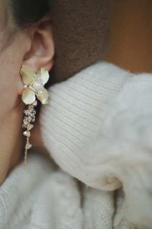 一粒一粒に表情があってとてもキレイビーズチェーンのdropに魅了、シンプルながらも存在感を発揮してくれますよ。耳先を品よく華やかに彩ります。