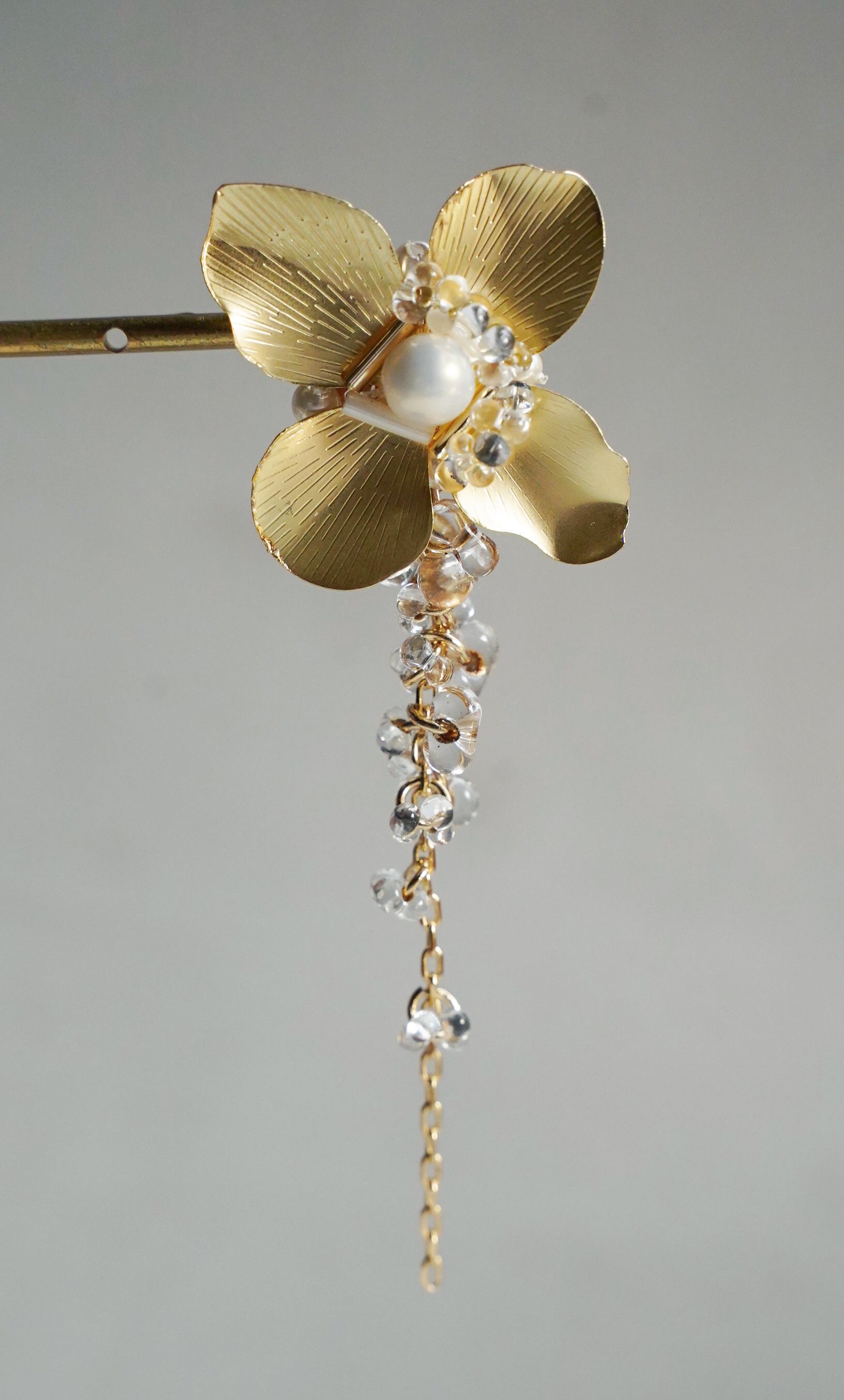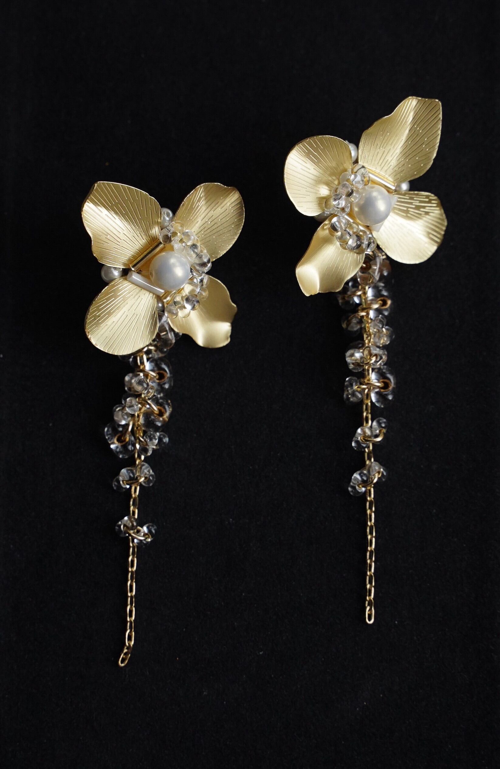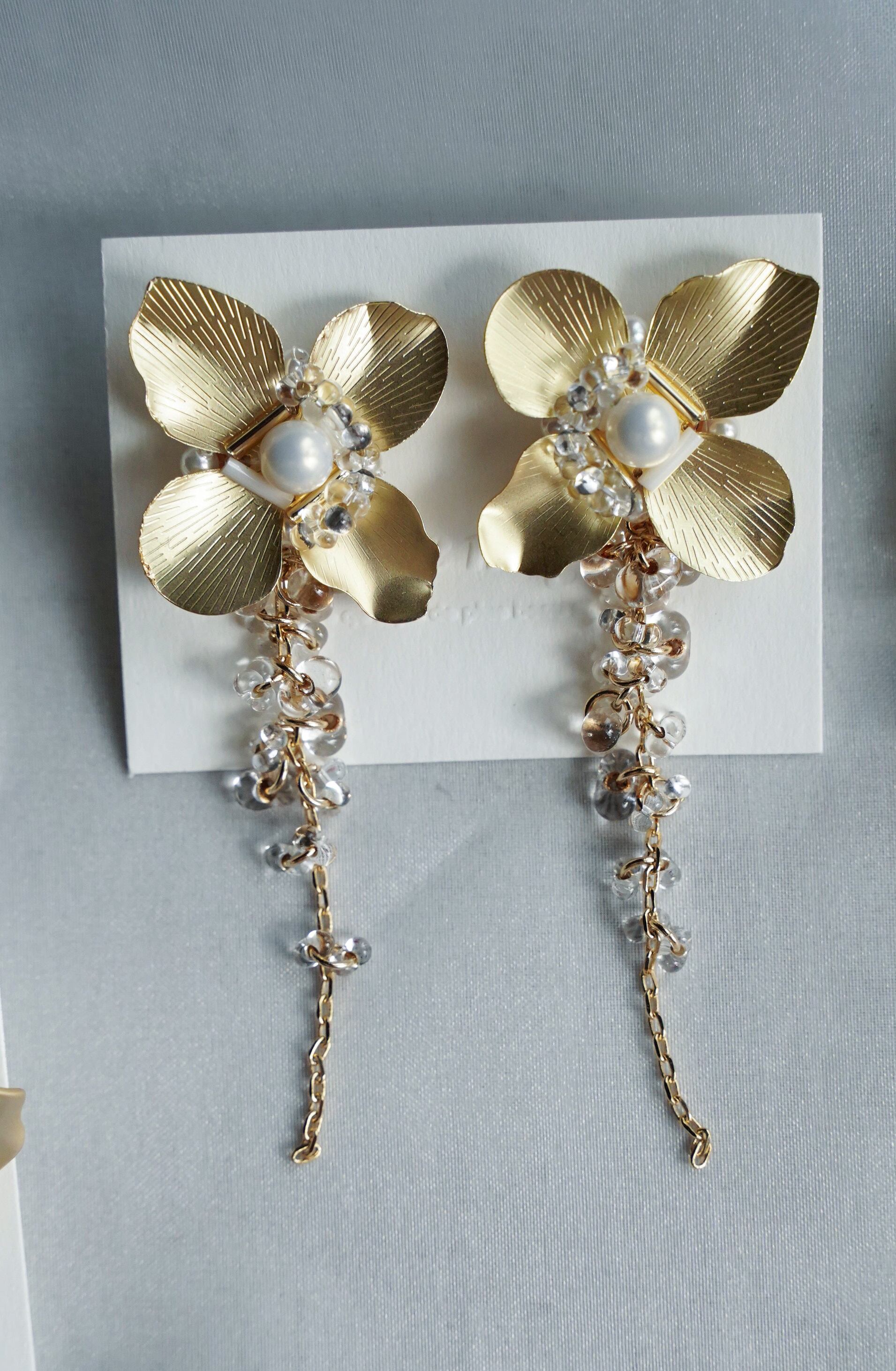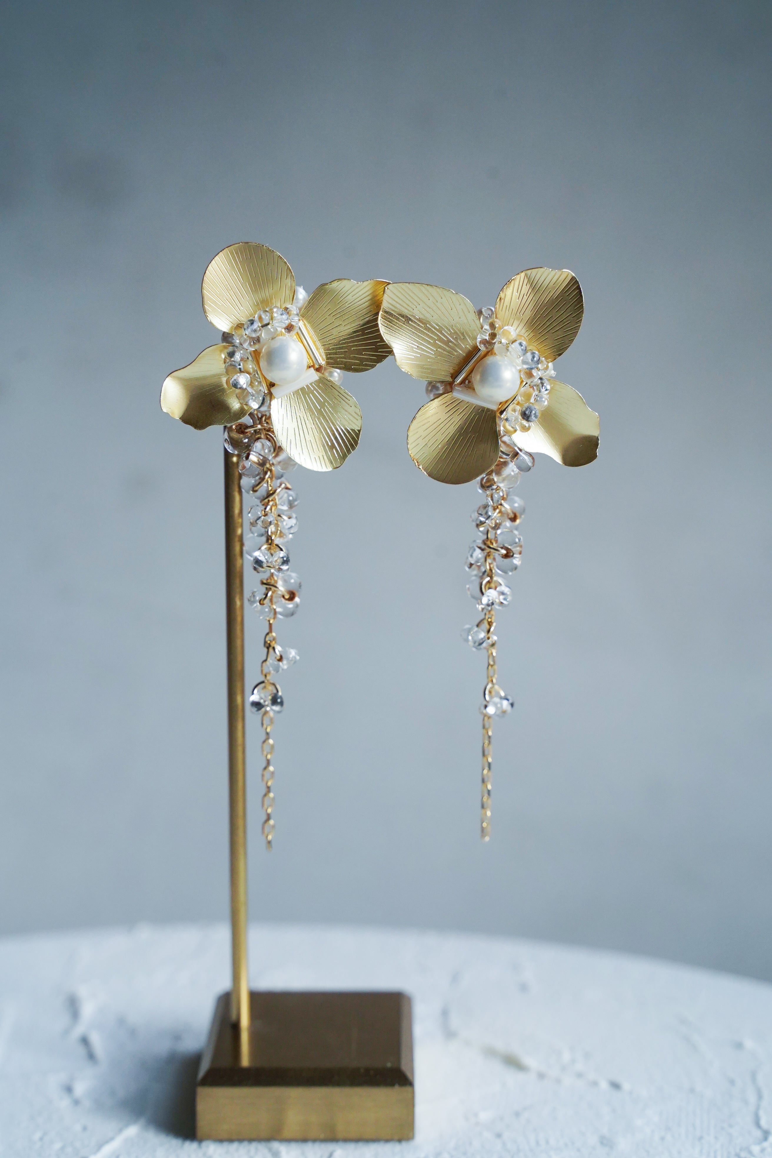 【ゴールドマット 花びら】ウエディングピアス*ゴールド花びら*大ぶりなアクセサリー*アレルギー対応