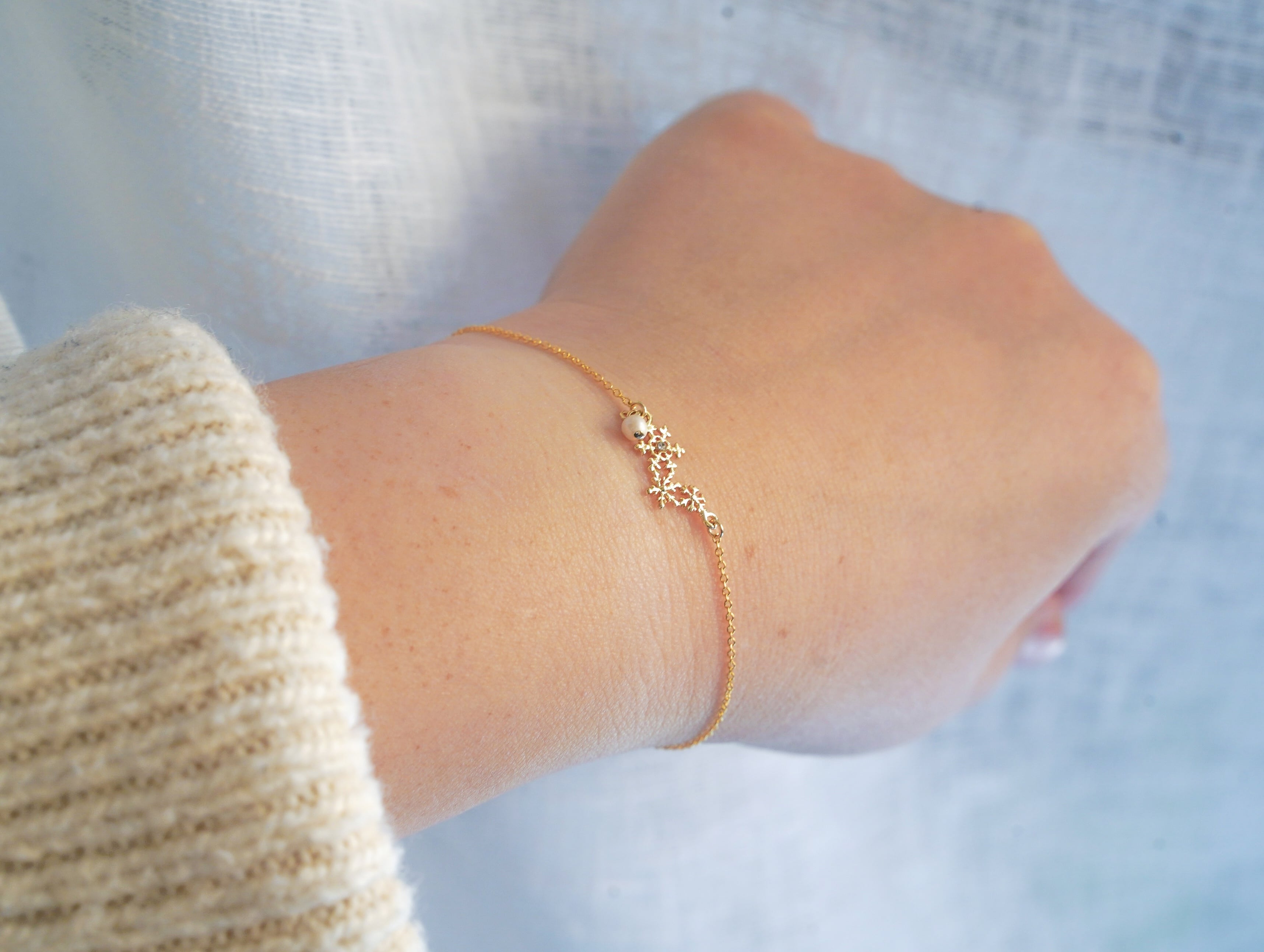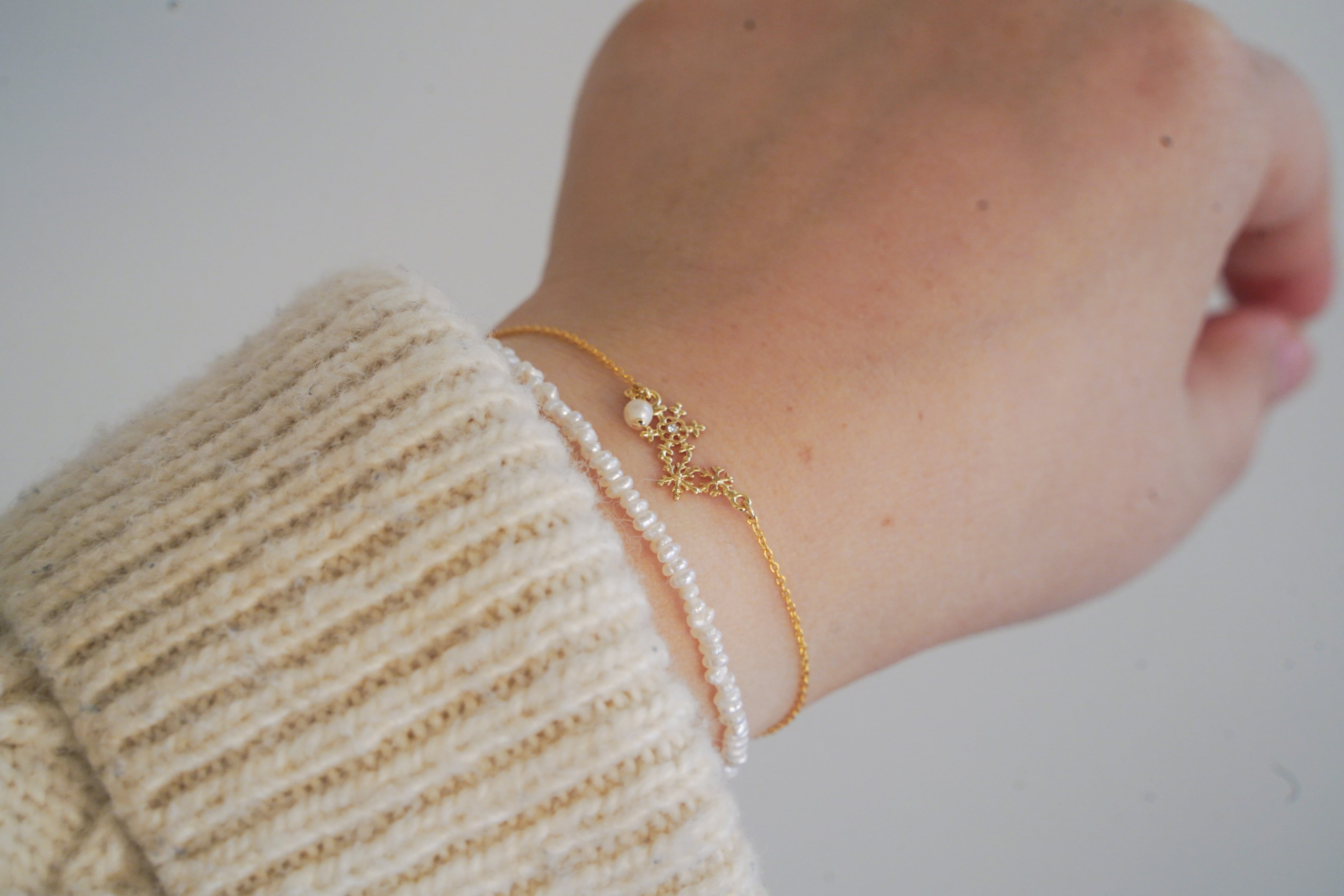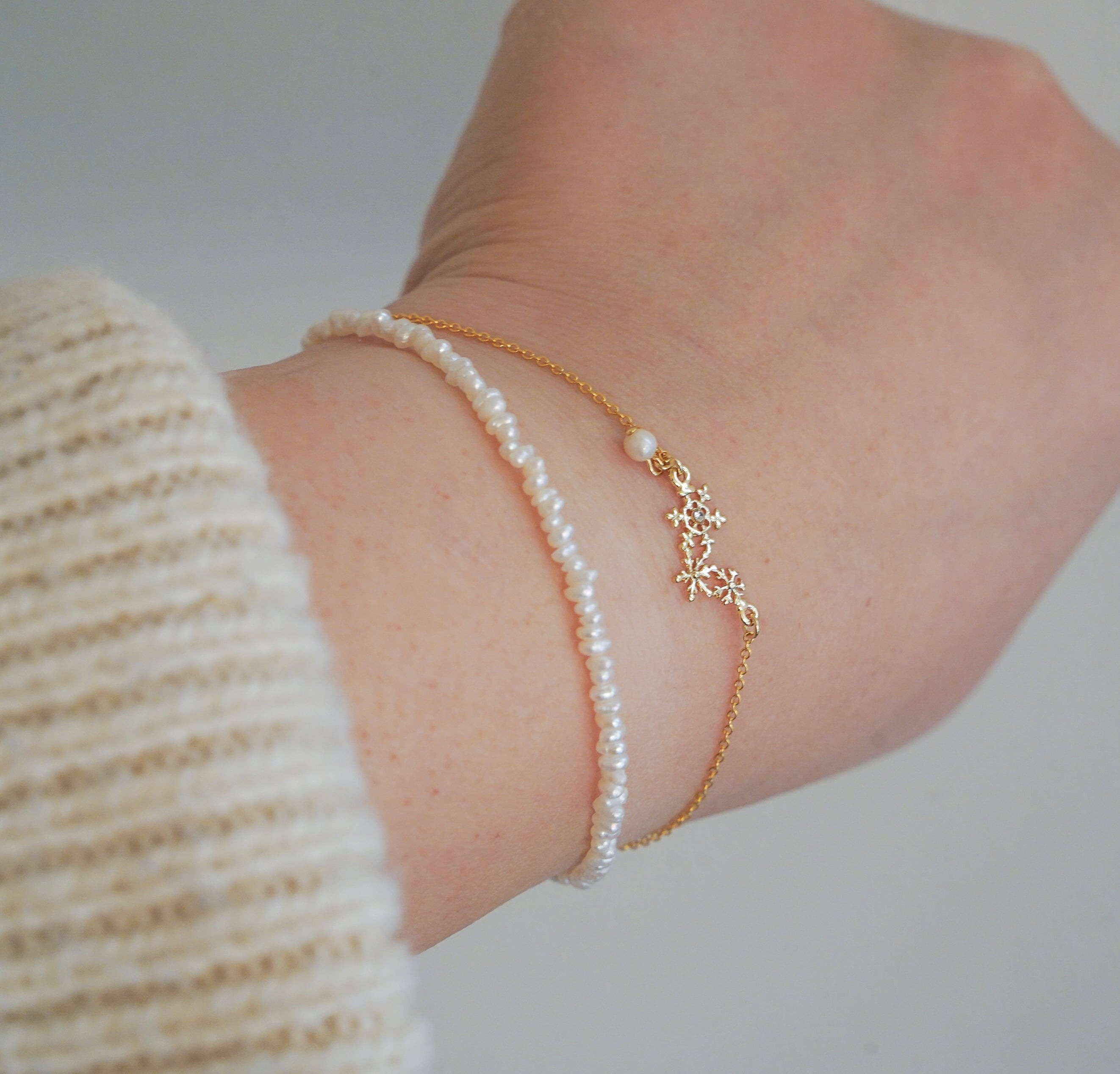 16kgp❄️雪の結晶❄️シンプルブレスレット(天然淡水パール)