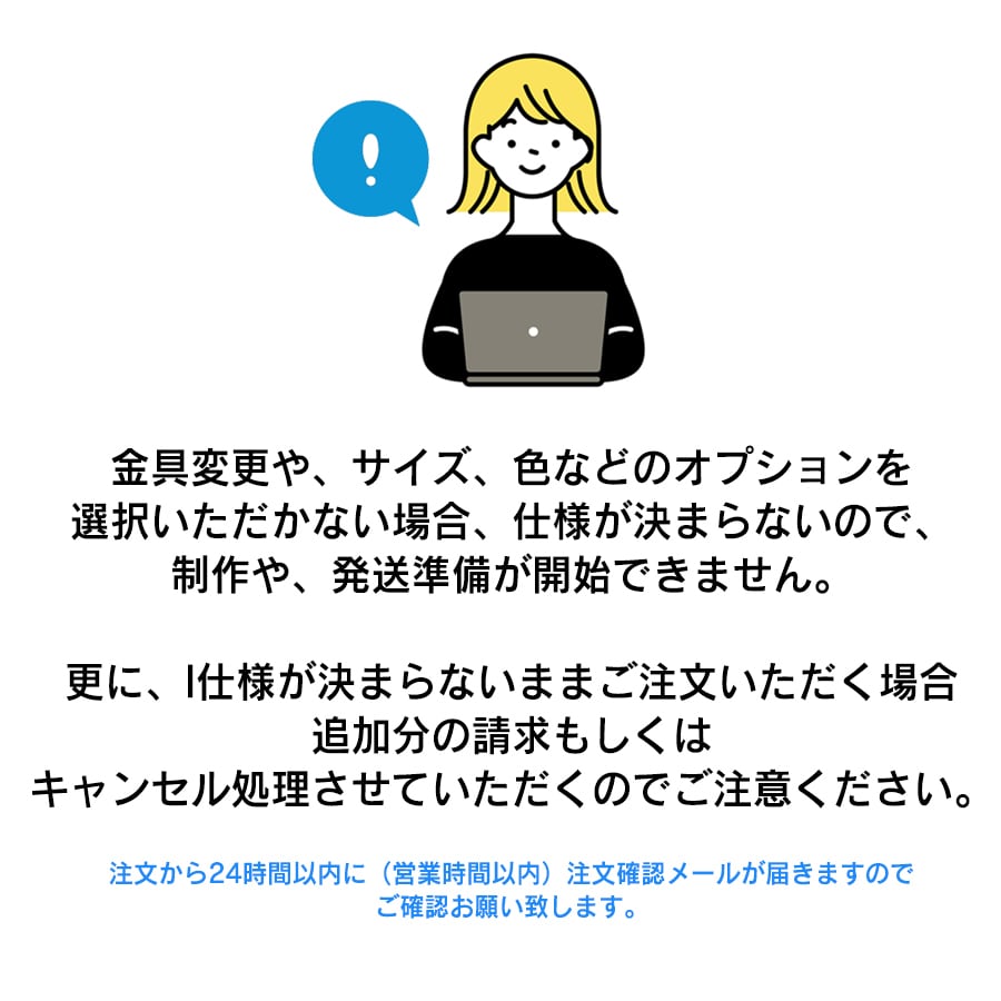 ※受注生産の商品については、製作の混み具合により1週間以上かかる場合もあります。